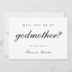 Simple and elegant godmother proposal card features "will you be my godmother" black script typography. This godparent proposal has a minimal and modern style in black and white, with a solid black editable colour back of the card.