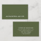 This business card design is the epitome of sophistication and elegance. The front of the card features your name in a simple and stylish white font, positioned in the lower third of the card against a solid olive green background. The back of the card features your title and contact information, also in simple white font on an olive green background. The result is a clean and modern design that exudes confidence and professionalism.