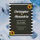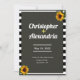 Introducing our beautiful sunflower wedding invitation, perfect for couples seeking a simple yet modern design for their special day. The invitation features a dark grey background with white text, giving it an elegant and sophisticated feel. The black and white striped border adds a touch of contemporary style, making it ideal for couples who want to infuse a bit of personality into their wedding.