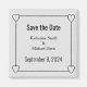 This simple and elegant save the date magnet features romantic hearts on the corners and clear sophisticated lettering.