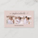 These simple and stylish, soft blush pink business cards for photographers, models, or entrepreneurs feature elegant swirly script calligraphy and three of your favourite photos or headshots for a modern and minimal look.