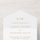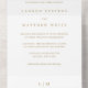 Unique All In One wedding invitation template with rsvp card for a convenient and low cost option for budget savvy couples. The modern yet elegant invitation features your two letter monogram at the top along with your wedding details in gold over a white background. A chic and stylish design that is great for a minimalist couple.