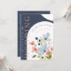 Simple Arch Blue and Pink Floral Wedding Invitation