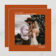 This simple wedding Save the Date card features an elegant square design with a rust orange or burnt umber coloured background and symmetrically placed text which is left justified on the top and right justified on the bottom. Upload your photo and give your guests advance notice of your upcoming wedding date.