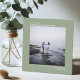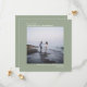This simple wedding Save the Date card features an elegant square design with a sage green background and symmetrically placed text which is left justified on the top and right justified on the bottom. Upload your photo and give your guests advance notice of your upcoming wedding date.