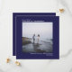 This simple wedding Save the Date card features an elegant square design with a navy blue background and symmetrically placed text which is left justified on the top and right justified on the bottom. Upload your photo and give your guests advance notice of your upcoming wedding date.