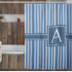 Simple Asst Sizes Blue and White Stripes Monogram Shower Curtain