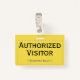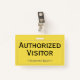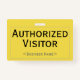 This simple badge design features the message "Authorised Visitor", and a customisable company name or other custom message. It also features a single-line border with rounded corners. A badge like this could maybe be used to show that somebody at a business or workplace is an authorised guest or visitor. [~Z0000307]