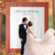 personalized welcome banner for an autumn wedding party tapestry in simple and elegant terracotta and gold with cute autumn leaves greenery is perfect as an autumn wedding party photo backdrop. Celebrate your fall wedding in style with the perfect autumn wedding theme in earthy colors, the perfect theme for a rchic ustic country style with the mood of autumn leaves.