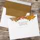 This design features a simple minimalist fall autumn watercolor, with orange gold golden bronze colour, a fall autumn greenery foliage themed 5x7 a7 size envelopes, with simple minimalist minimal classic, a botanical brown gold orange leaves, an elegant nature botanical bronze leaf, fall autumn foliage leaves colours, with a return address printed back flap, maple tree crisp leaves leaf design.