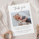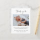 A Simple Simple Baby Photo Birth Stats Thank You Card featuring handwritten script thank you and minimal typography. Click the edit button to easily customize this thank you template with your own details and photograph.