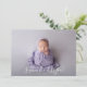 Elegantly sweet birth announcements feature your favourite newborn photo in full bleed and your message in beautiful white script on the front, your thank you message, baby's name, birth stats and your names in chic white lettering on the back. Change the colour on the back to any colour that suits your photo using our colour picker tool by clicking the Customise further link. You can add more photos on the back, too!