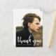 Simple white thank you script typography with full photo on the front, and a sweet thank you message with a blue star of david and return address on the back of the postcard.