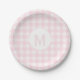 Simple Basic Pale Pink Gingham Monogram Paper Plate