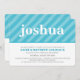 SIMPLE BAT MITZVAH cute stripe pattern aqua blue Invitation