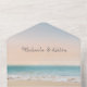 Your guests will love this all in one wedding invitation. A calming beach design is easy for you to personalise. This includes your RSVP, that the guest can remove and mail back to you. Start now to personalise this coastal sandy beach design.