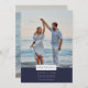 Simple navy blue design photo beach wedding save the dates, perfect for a beach wedding. Simple two-photo design features one photo and your wedding details on the front. Add a second engagement photo to the back.