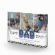 Modern father photo block featuring 3 family pictures for you to replace with your own memories, the saying "best dad ever", and the kids names.