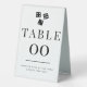 This sturdy, plastic tent style Bunco game table marker is perfect for any additional tables you need beyond the Head Table and match the Bunco Game Night collection. Don't forget to personalise one for each additional table needed including, if needed, the helpful reminder for where players go at the end of the round. Simple and classic black and white graphics suit any Bunco party and easily blend with many themes while the sturdy material can be reused over and over.