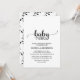 This simple black and white calligraphy baby BBQ invitation card is perfect for a rustic or modern coed baby shower. The minimalist design features elegantly simple typography and a lovely heart. The backing features a classic leaf and branches pattern.