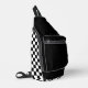 The pattern is a black and white chequerboard on the sides. The front is black.