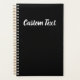 This black planner has display text in an elegant white script. The text can be edited or deleted.