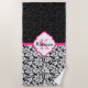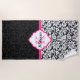 Modern and simple black and white floral damask pattern and hot pink frame and stripe. Optional monogram