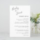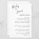Simple black and white wedding menu with your names in an elegant handwritten script at the top left and your menu options in right alignment at the bottom right. The chic hand lettering adds a romantic touch to this minimalist design. These cheap wedding menus are printed on sheets of paper for a budget friendly option.