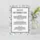 An insert for a wedding or event invitation for guest information. The design consists of a simple floral border in a black and white colour palette.
