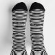 A classic pattern of thin, horizontal stripes is on these black and white socks.