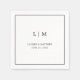 Simple wedding napkin featuring a modern yet elegant design with your two letter monogram along with your names and wedding date surrounded by a thin border. All design elements are black over a white background and may be changed to any colours you wish. A chic and stylish design that is great for a minimalist couple. These custom napkins are a great way add a personal touch to your reception, engagement party or rehearsal dinner.