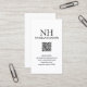 Modern QR Code business cards featuring a simple and minimal black and white design with your monogram in a bold font along with your name at the top. Below is your contact info.