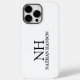 Modern phone case featuring a simple and minimal black and white design with your monogram in a bold font along with your name.