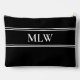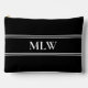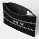 This black accessory bag has three white letters on the front and back. You can change the letters to display the correct monogram. Two white horizontal lines are above and below the initials.