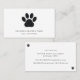 Simple, modern and minimal dog groomer paw print business cards featuring paw prints along with your company name on the front and company details on the back all in a modern font. Perfect for pet grooming professionals and others in the animal care industry. White background with black text which can be changed if preferred. Simple to customise by adding your own business details.