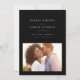 With elegant but simple modern typography, this one-photo save the date is the perfect way to announce your engagement and upcoming wedding. The classic black and white colour works with every style of wedding from formal to casual. The back features a simple stripe. The colour can be changed by clicking "customise further."