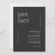 These 5" x 7" save the date cards feature a minimalist design in white letters on a black background with placeholders for the engaged couple names, wedding date, and venue information. The back has a spot to insert your favourite photo with the couple names and wedding date.