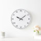 This is a clean and elegant wall clock, white background with black numbers of a simple Roman Numeral style. The perfect clock for people who like the 'uncluttered look' and a clock that shows the time clearly.