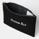 This black accessory pouch has text in white script. The text can be edited or deleted.