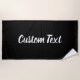 This black beach towel has a white script as its display text. You can edit it to show personalised text.