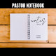 A modern Sermon Notes trendy script with personalised name in black script typography. Notebook for church pastor and clergy.