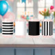 Minimalist design with black and white stripes. See my store for matching tablecloths, placemats, coasters and more, including a mix-and-match with plain black and white and black and white polka dots. The colour of these stripes can be easily changed to your preferred colour. If you need any assistance, or if you need a different colour combo - please contact me, and I will gladly assist where I can. Printed can glasses set of four.