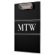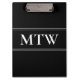 You can edit the white display text to show the correct monogram. White lines are above and below the text. The clipboard is black.