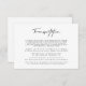 The Simple Black and White Wedding Transportation Card is the perfect addition to your wedding stationery. With its clean and minimalistic design, it effortlessly complements any wedding theme. This transportation card allows you to provide essential details such as transportation options, pick-up and drop-off locations, and any special instructions for your guests. Its timeless black and white colour scheme adds a touch of elegance to your wedding invitations. Designed to coordinate with for the «Modern Classic» Wedding Invitation Collection. To change details, click «Personalise». View the collection link on this page to see all of the matching items in this beautiful design.