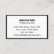 This simple business card is double-sided. Both sides have an elegant black border. Side one has lines of display text for your name, address, phone number, and email address. Side two has a display image you can replace with your logo or a QR code. All text can be edited or deleted. The text is black.