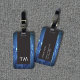 Elegant customisable luggage tag with a professional studio photo of blue circuit board, black stripe and monogram.