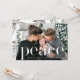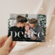 Elegant family Christmas greeting features a beautiful holiday aesthetic black and white leafy botanical pattern with peace in big white type, and one full photo. Shop this festive holiday collection for coordinating items!