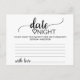 These simple black calligraphy date night idea cards are the perfect activity for a rustic or modern wedding reception or bridal shower. The minimalist design features an elegant brush script font and a lovely feminine heart. Personalise these cards with the name of the bride and groom.