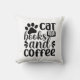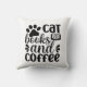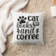 Simple Black "Cat Books and Coffee" Lover Gift Cushion