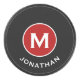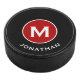 Simple Black Classic Red Monogram Name Hockey Puck